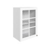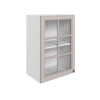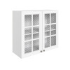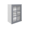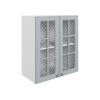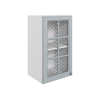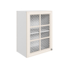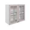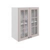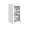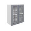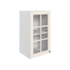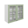 Стекло с узором придает модулю визуальную легкость, а декоративные планки служат стильными акцентами. Внутри удобно хранить красивую посуду, бокалы и другие кухонные принадлежности.