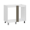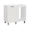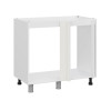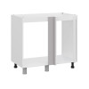 Внутри находится просторное отделение без задней стенки и полок. Регулируемые ножки обеспечивают устойчивость модуля даже на полу с небольшими неровностями.