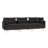 Модель дополнена уютными подушками под спину и узкими подлокотниками. Круглые деревянный ножки визуально облегчают конструкцию и упрощают уборку. Спинка обита лицевой тканью, поэтому диван отлично смотрится качестве зонирующего элемента в просторной гостиной. Модель можно комбинировать с другой мягкой мебелью из коллекции.
