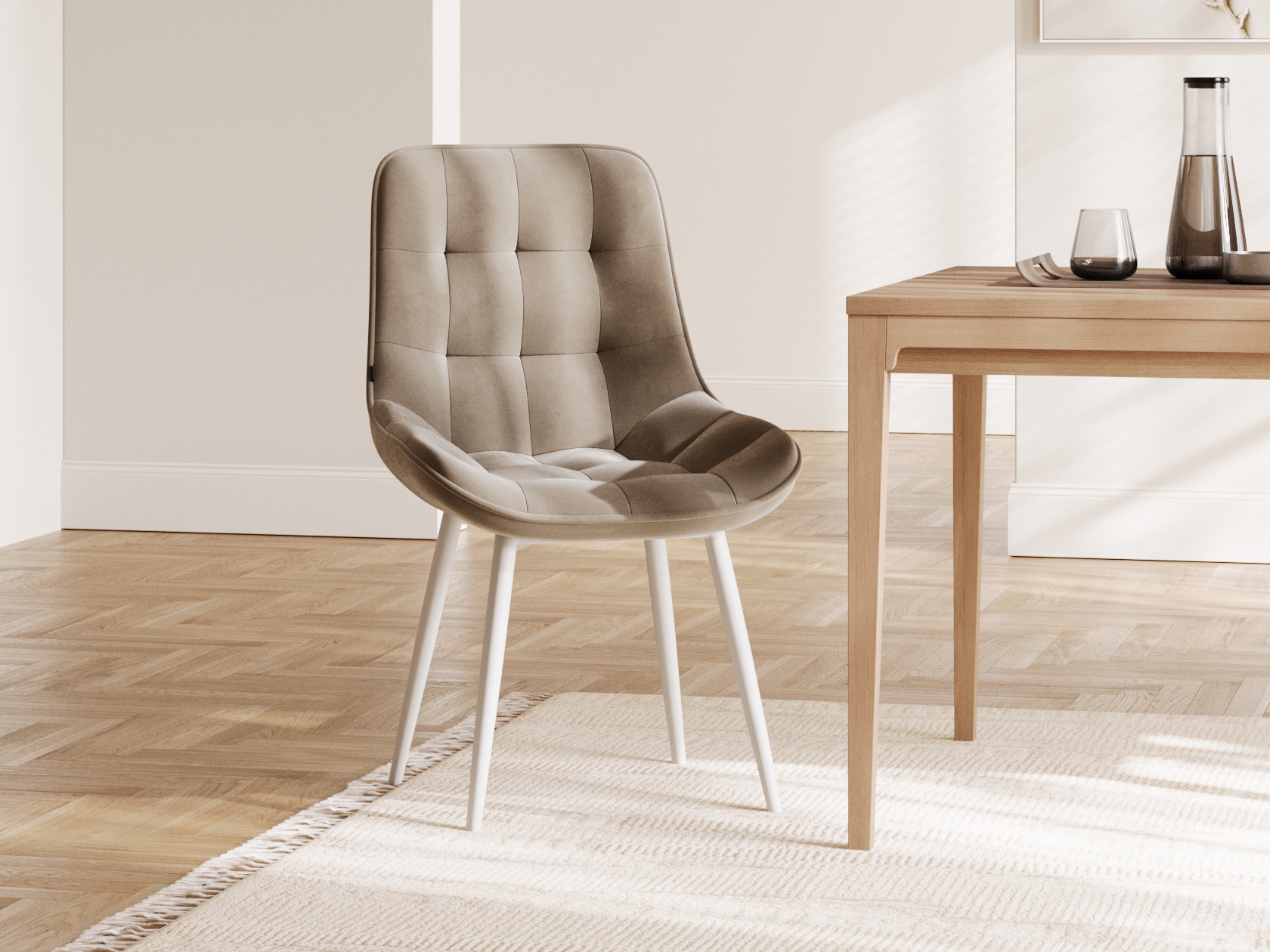 Молочный, микровелюр / Белый, металл / 1 шт.