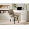 Сиденье и спинка выполнены в мягкой обивке, которая делает интерьер уютнее. Металлический каркас выдерживает большие нагрузки и продлевает срок службы. Модель отлично дополнит как обеденную зону, так и спальню или гостиную.