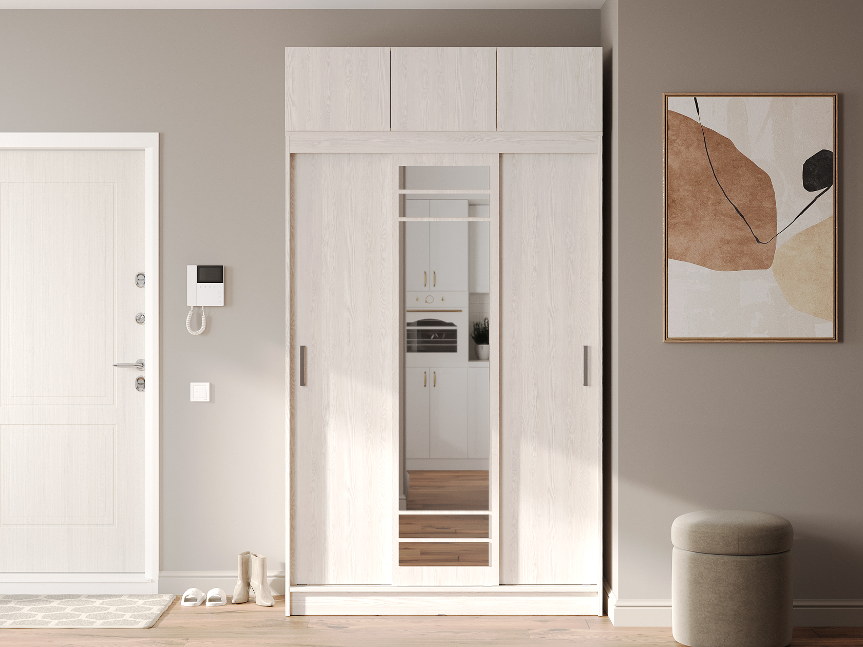 Ясень белый / Зеркало / С антресольным шкафом