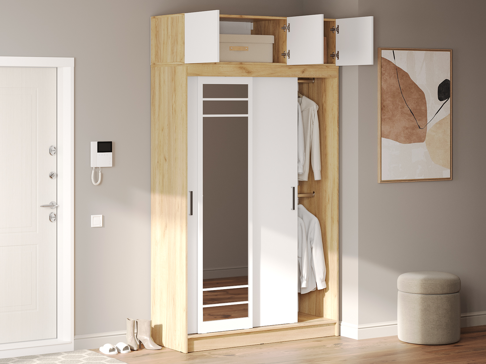 Белый / Зеркало / С антресольным шкафом