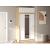 Раздвижные дверцы не требуют дополнительного пространства при открывании, поэтому модель добавит функционала даже комнате, где площадь ограничена. Внутри можно с комфортом разместить одежду на плечиках и в сложенном виде. Высокое зеркало позволит рассмотреть свое отражение в полный рост.