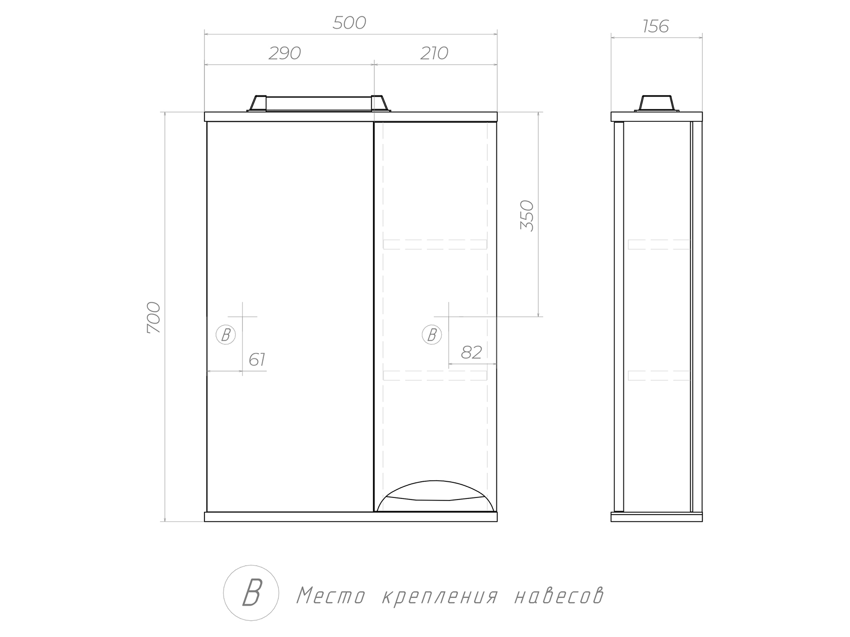 Зеркало с системой хранения и подсветкой: 70 х 50 х 15,6 см.