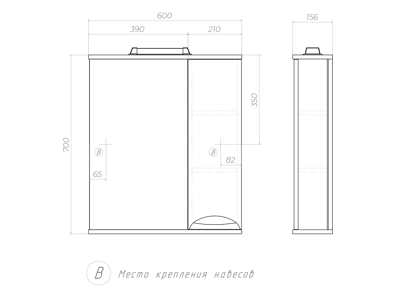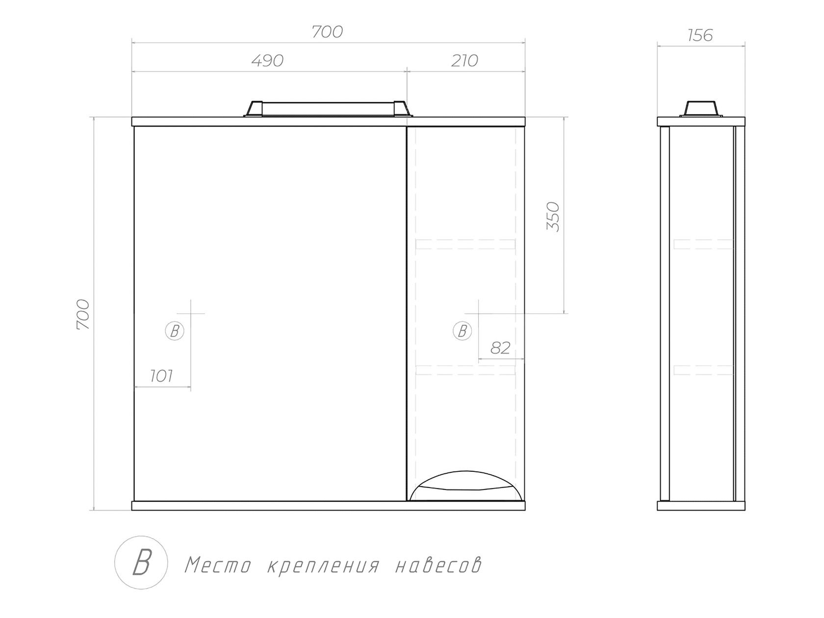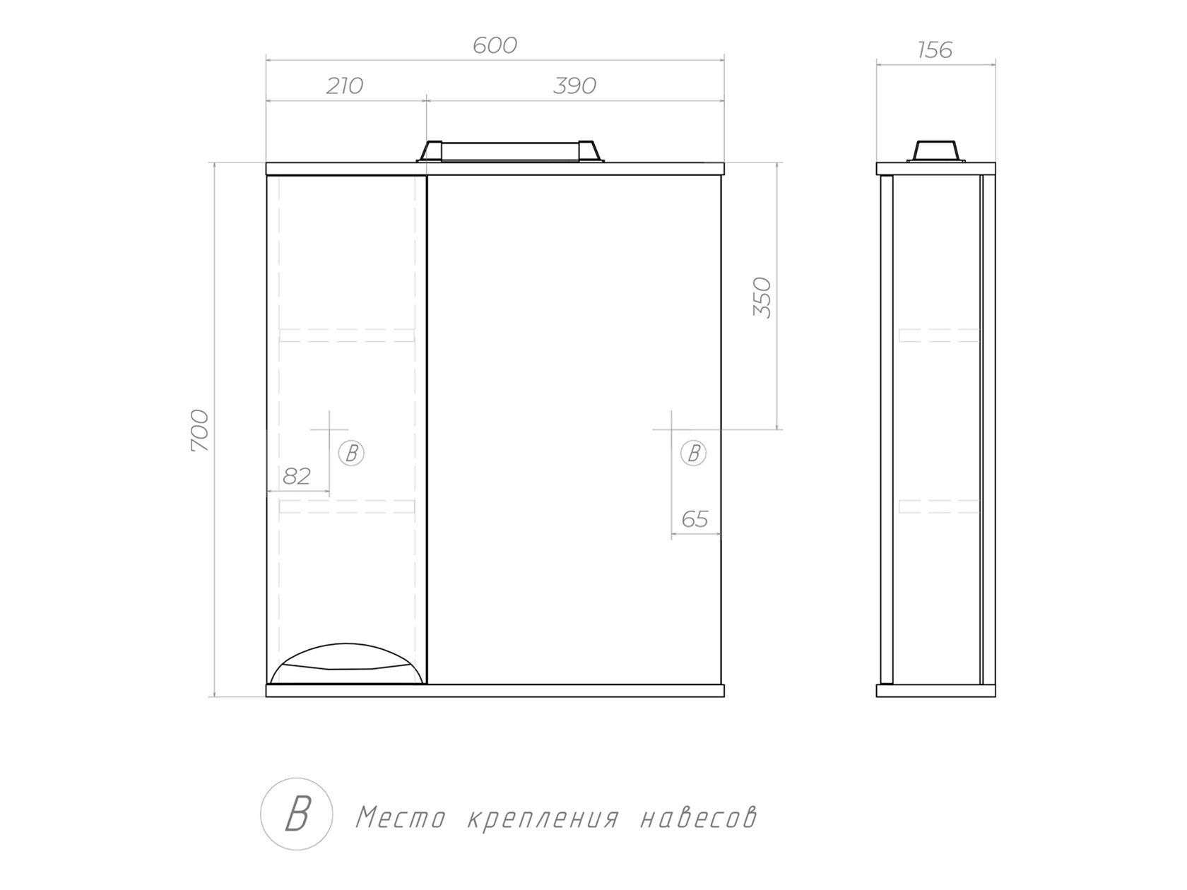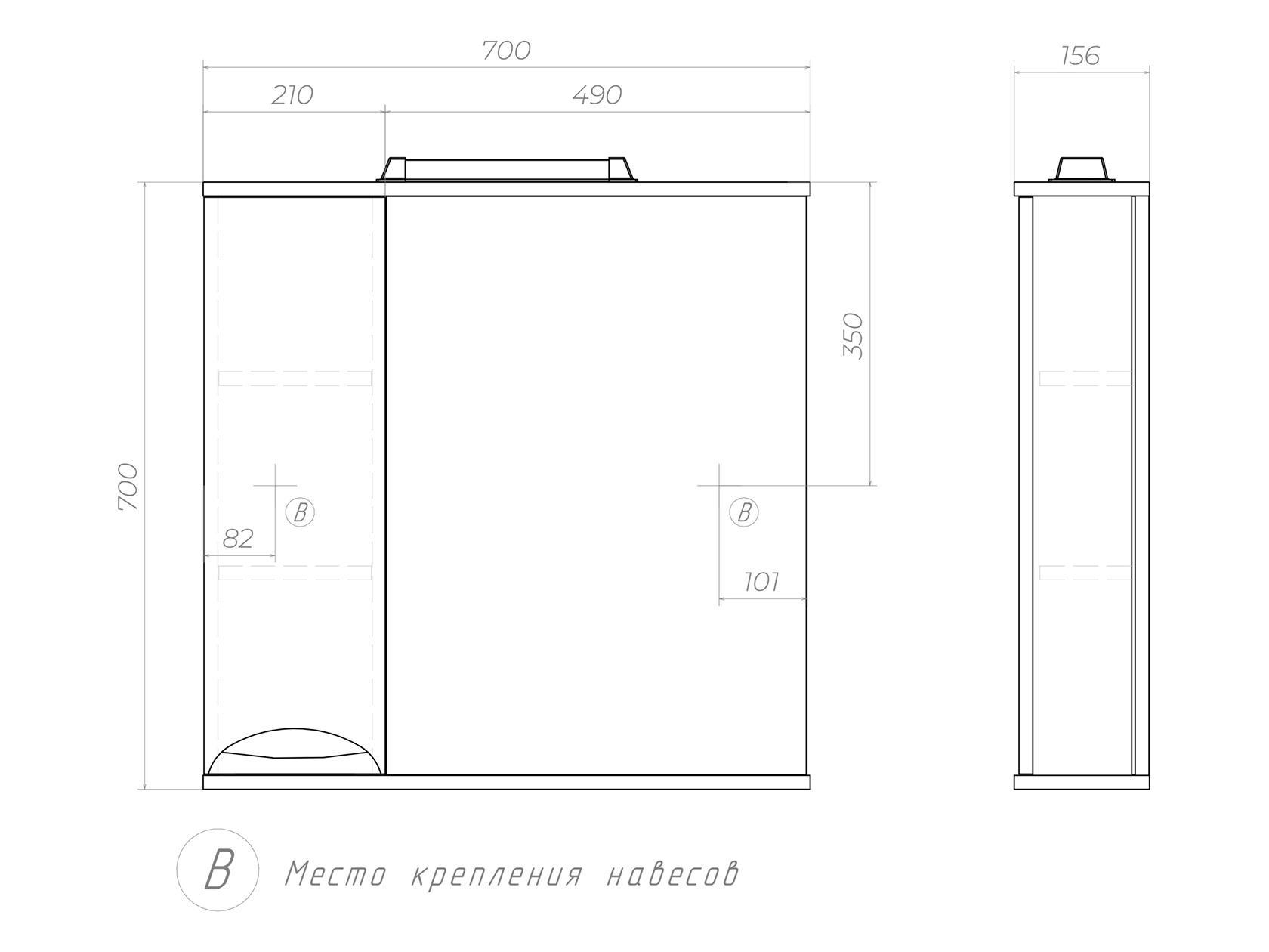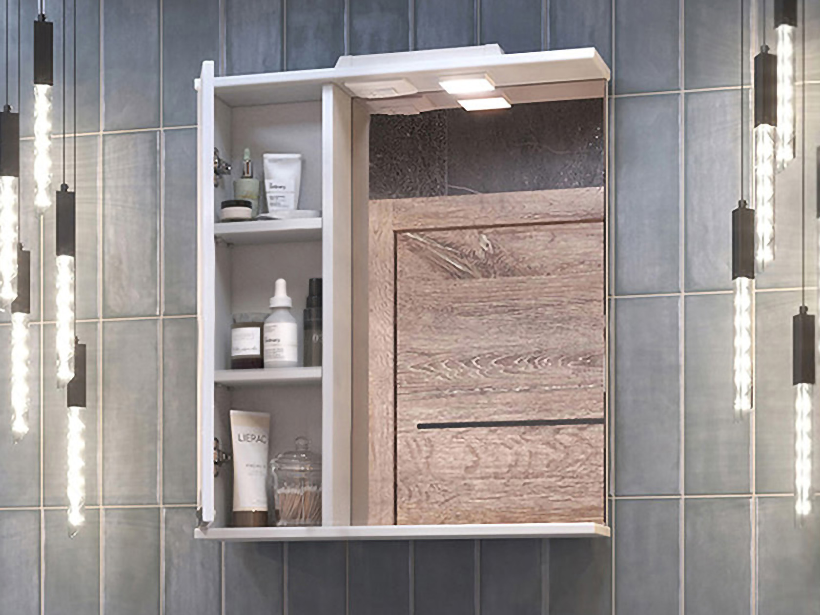Зеркало с системой хранения и подсветкой: 70 х 60 х 15,6 см.