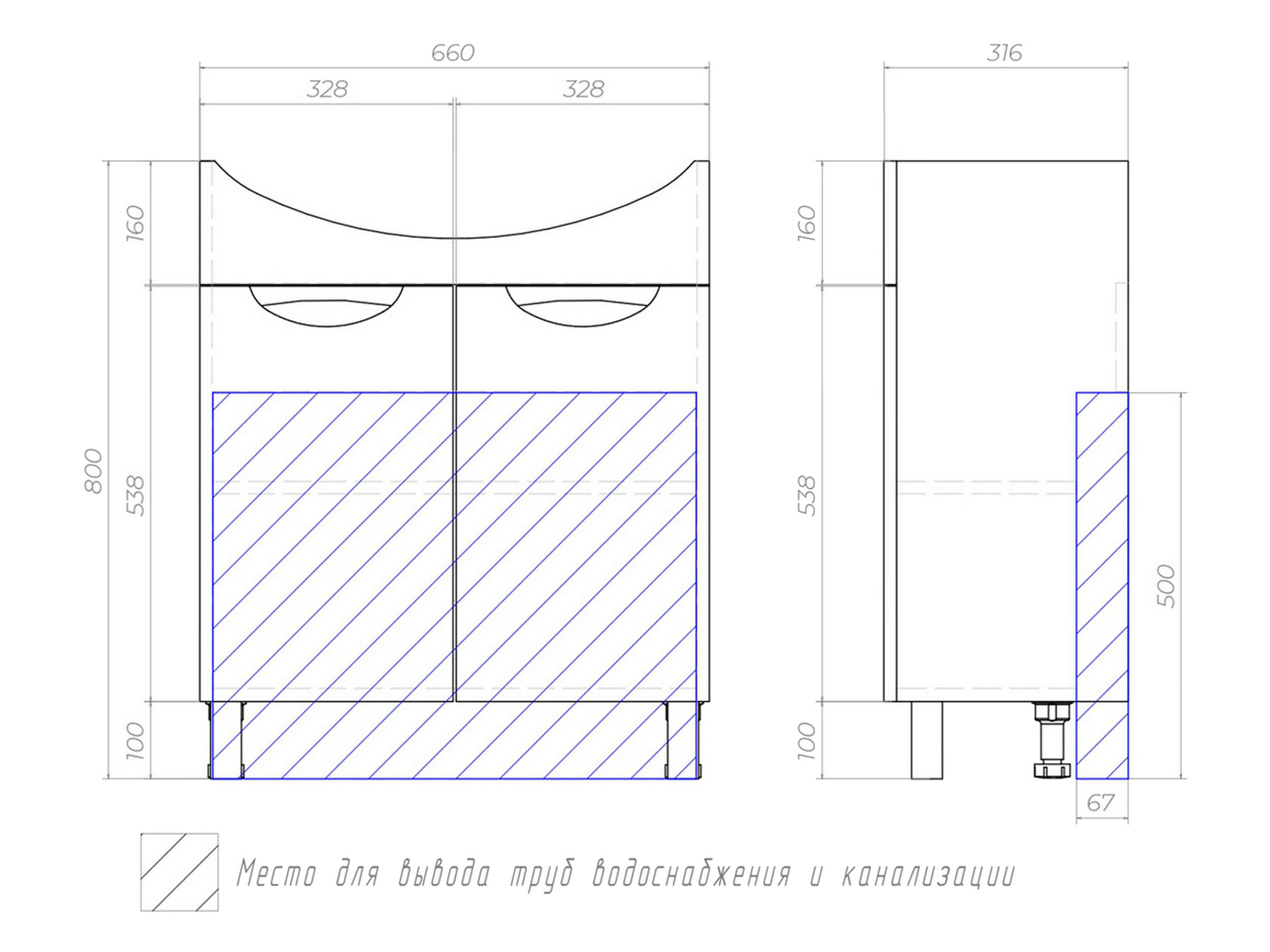 Напольная тумба под раковину: 80 х 66 х 31,6 см.