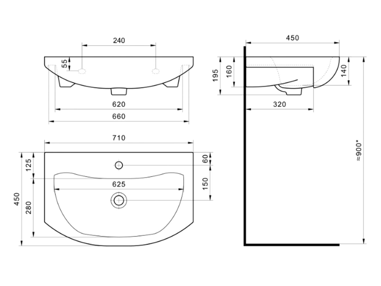 Фурнитура для крепления к стене, смеситель и сифон в комплект не входят.
