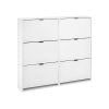 Благодаря небольшой глубине модель поместится даже в ограниченном пространстве. Удобные секции с откидными дверцами позволяют аккуратно хранить туфли, ботинки и кроссовки. Лаконичный дизайн без лишних деталей гармонично дополнит современный интерьер.