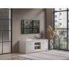 В отделениях за распашными дверцами и открытой нише достаточно места для мультимедийной техники, дисков и различных гаджетов. Фрезеровка по бокам добавляет стильные акценты интерьеру комнаты.