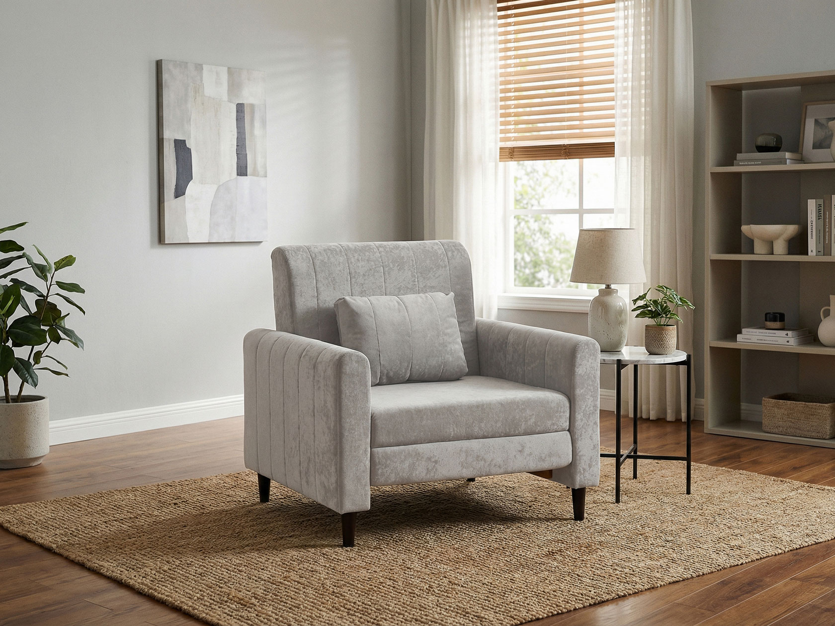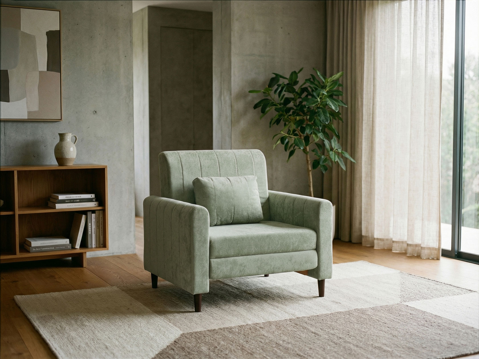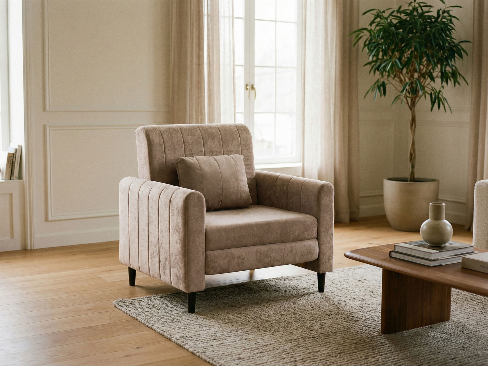 Компактная модель подходит как для отдыха, так и для сна. Спинка обита тканью, поэтому кресло можно установить в любой точке. Элегантный дизайн с вертикальной стежкой добавляет обстановке нотку современности.