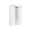 Контрастный оттенок декора в сочетании со светлым корпусом смотрятся легко и невесомо, поэтому модель подходит даже для небольшого помещения. Дверцы защищают содержимое от пыли и посторонних глаз, а открытые полки позволяют красиво расставить игрушки, фотографии или книги.