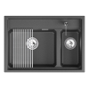 Широкая чаша предназначена для крупной посуды, а узкая — для фруктов, овощей и различных мелочей. Кварцевый материал устойчив к царапинам, абразивным средствам, влаге и высоким температурам.