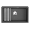 Вытянутая прямоугольная форма позволяет легко справляться с большим объемом посуды. Плотный композитный кварц обеспечивает защиту от мелких повреждений и долгую комфортную эксплуатацию. Ролл-мат и дозатор добавляют удобства и стильных акцентов.